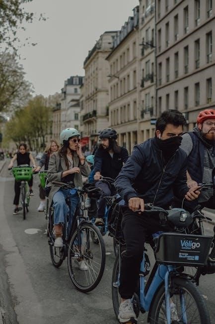 Cycling in France requires adherence to specific road safety regulations to ensure a smooth and secure experience․ Always ride on the right side of the road, and be aware that cyclists are expected to follow the same traffic laws as motorists, including obeying traffic signals and signs․